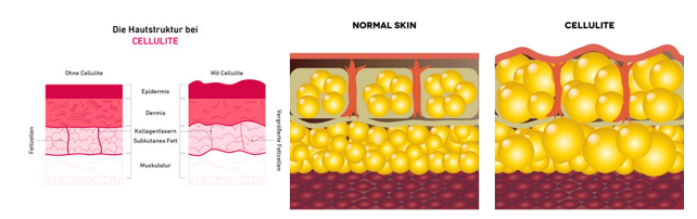 Das führt zu den typischen Dellen an Oberschenkeln, Po und Hüften.